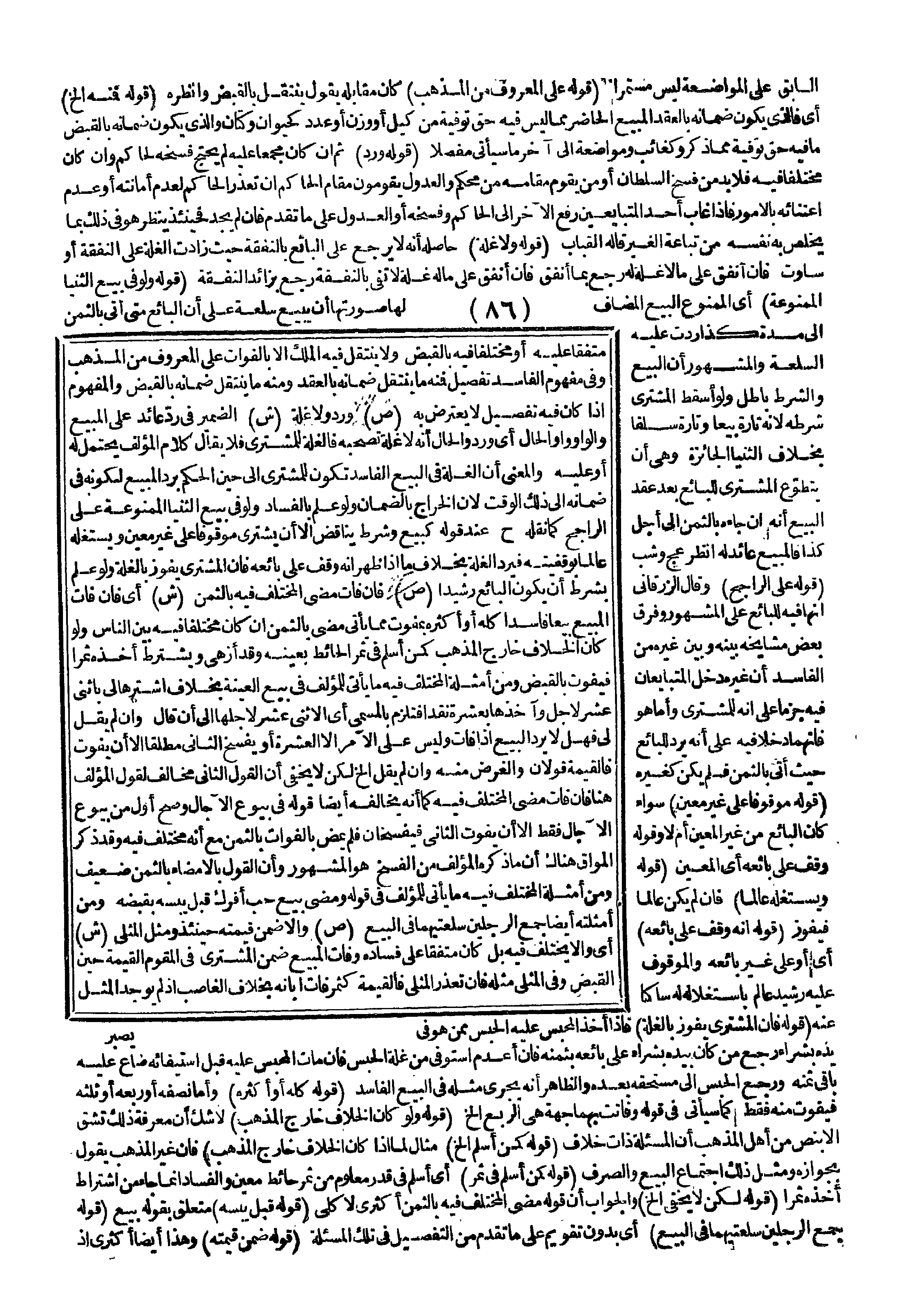 وَالْغَرَضُ مِنْهُ، وَإِنْ لَمْ يَقُلْ إلَخْ لَكِنْ لَا يَخْفَى أَنَّ الْقَوْلَ الثَّانِيَ مُخَالِفٌ لِقَوْلِ الْمُؤَلِّفِ هُنَا، فَإِنْ فَاتَ مَضَى الْمُخْتَلَفُ فِيهِ كَمَا أَنَّهُ يُخَالِفُهُ أَيْضًا قَوْلُهُ فِي بُيُوعِ الْآجَالِ وَصَحَّ أَوَّلُ مِنْ بُيُوعِ الْآجَالِ فَقَطْ إلَّا أَنْ يَفُوتَ الثَّانِي فَيُفْسَخَانِ فَلَمْ يَمْضِ بِالْفَوَاتِ بِالثَّمَنِ مَعَ أَنَّهُ مُخْتَلَفٌ فِيهِ وَقَدْ ذَكَرَ الْمَوَّاقُ هُنَاكَ أَنَّ مَا ذَكَرَهُ الْمُؤَلِّفُ مِنْ الْفَسْخِ هُوَ الْمَشْهُورُ وَأَنَّ الْقَوْلَ بِالْإِمْضَاءِ بِالثَّمَنِ ضَعِيفٌ