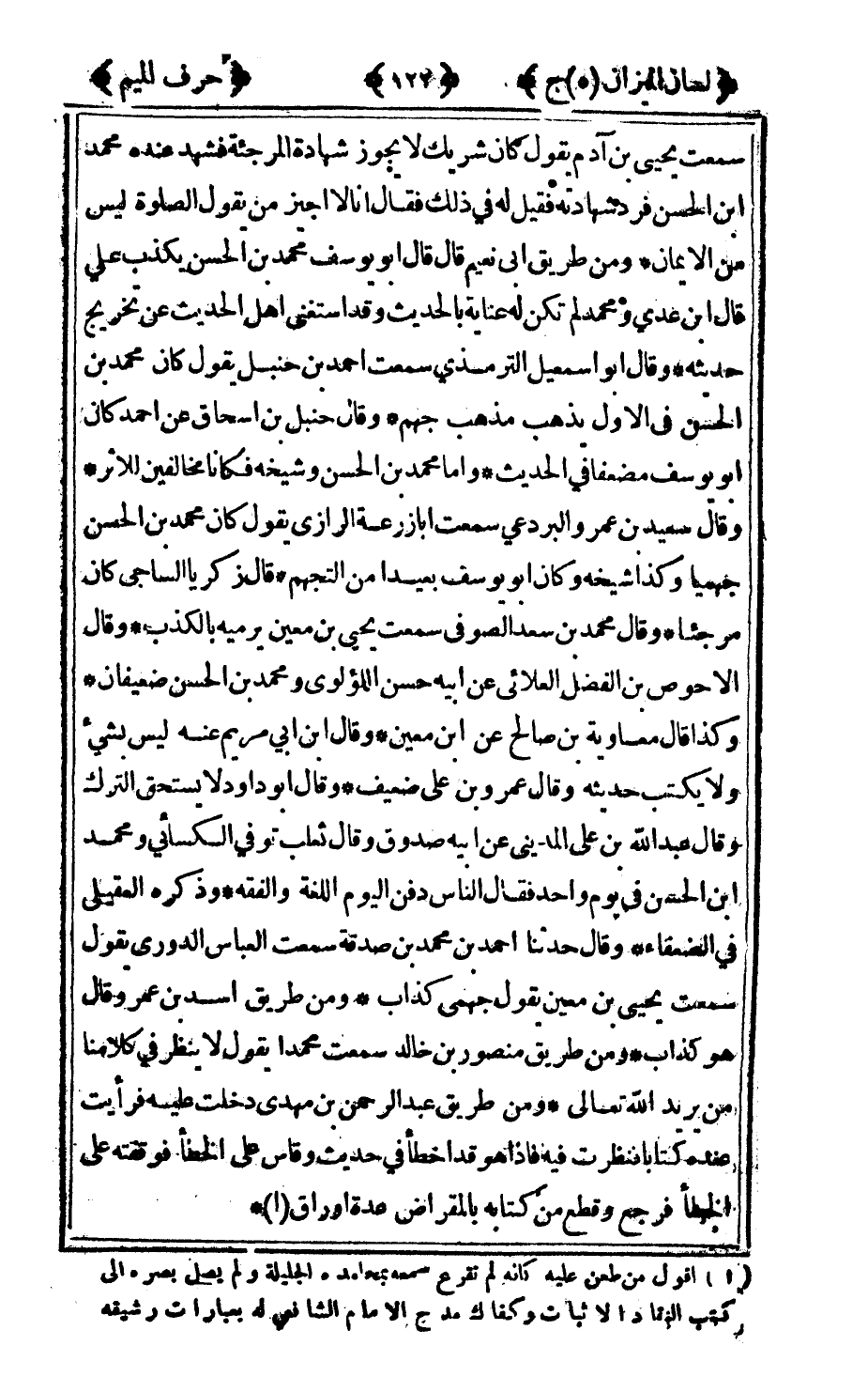 سمعت يحيى بن آدم يقول: كان شريك لا يجوز شهادة المرجئة فشهد عنده محمد بن الحسن فرد شهادته فقيل له في ذلك فقال: أنا لا أجيز من يقول: الصلاة ليس من الإيمان ومن طريق أبي نعيم قال: قال أبو يوسف محمد بن الحسن يكذب علي قال ابن عدي: ومحمد لم تكن له عناية بالحديث وقد استغنى أهل الحديث عن تخريج حديثه وقال أبو إسماعيل الترمذي سمعت أحمد بن حنبل يقول: كان محمد بن الحسن في الأول يذهب مذهب جهم وقال حنبل بن إسحاق عن أحمد كان أبو يوسف مضعفا في الحديث وأما محمد بن الحسن وشيخه فكانا مخالفين للأثر وقال سعيد بن عمرو البردعي سمعت أبا زرعة الرازي يقول: كان محمد بن الحسن جهميا وكذا شيخه وكان أبو يوسف بعيدا من التجهم قال زكريا الساجي كان مرجئا وقال محمد بن سعد الصوفي سمعت يحيى بن معين يرميه بالكذب وقال الأحوص بن الفضل العلائي عن أبيه حسن اللؤلؤي ومحمد بن الحسن ضعيفإن وكذا قال معاوية بن صالح عن ابن معين وقال ابن أبي مريم عنه ليس بشيء ولا يكتب حديثه وقال عمرو بن علي ضعيف وقال أبو داود لا يستحق الترك وقال عبد الله بن علي المديني عن أبيه صدوق وقال ثعلب توفي الكسائي ومحمد بن الحسن في يوم واحد فقال الناس: دفن اليوم اللغة والفقه وذكره العقيلي في الضعفاء وقال حدثنا أحمد بن محمد بن صدقة سمعت العباس الدوري يقول: سمعت يحيى بن معين يقول: جهمي كذاب ومن طريق أسد بن عمر وقال هو كذاب ومن طريق منصور بن خالد سمعت محمدا يقول: لا ينظر في كلامنا من يريد الله تعالى ومن طريق عبد الرحمن بن مهدي دخلت عليه فرأيت عنده كتابا فنظرت فيه فإذا هو قد أخطأ في حديث وقاس على الخطأ فوقفته على الخطأ فرجع وقطع من كتابه بالمقراض عدة أوراق1.