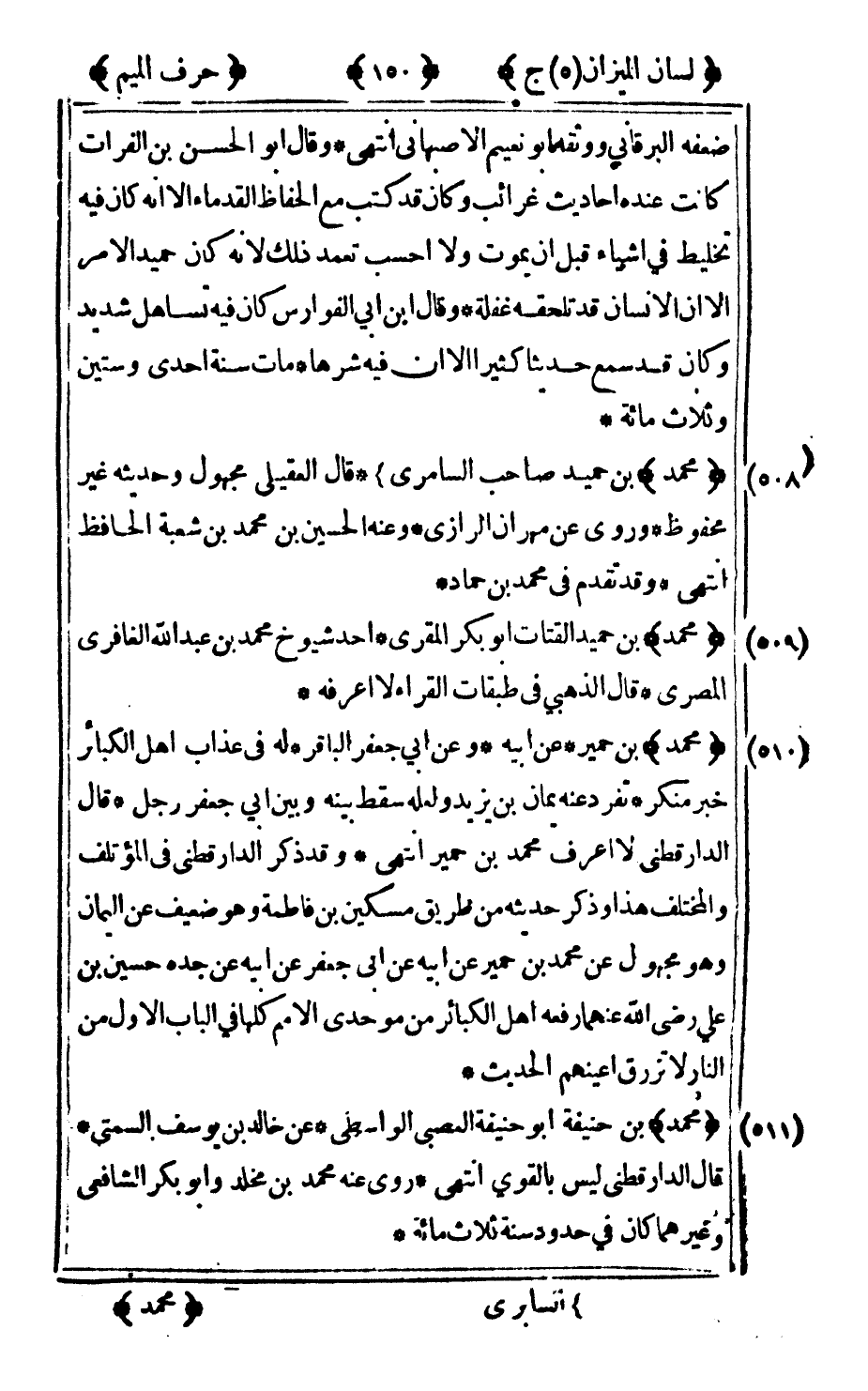 508 - "محمد" بن حميد صاحب السامري1 قال العقيلي مجهول وحديثه غير محفوظ وروى عن مهران الرازي وعنه الحسين بن محمد بن شعبة الحافظ انتهى وقد تقدم في محمد بن حماد.