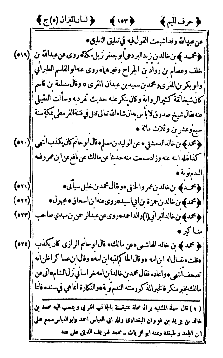 523 - "محمد" بن خالد البراثي1 والد أحمد روى عن عبد الرحمن بن مهدي صاحب مناكير.