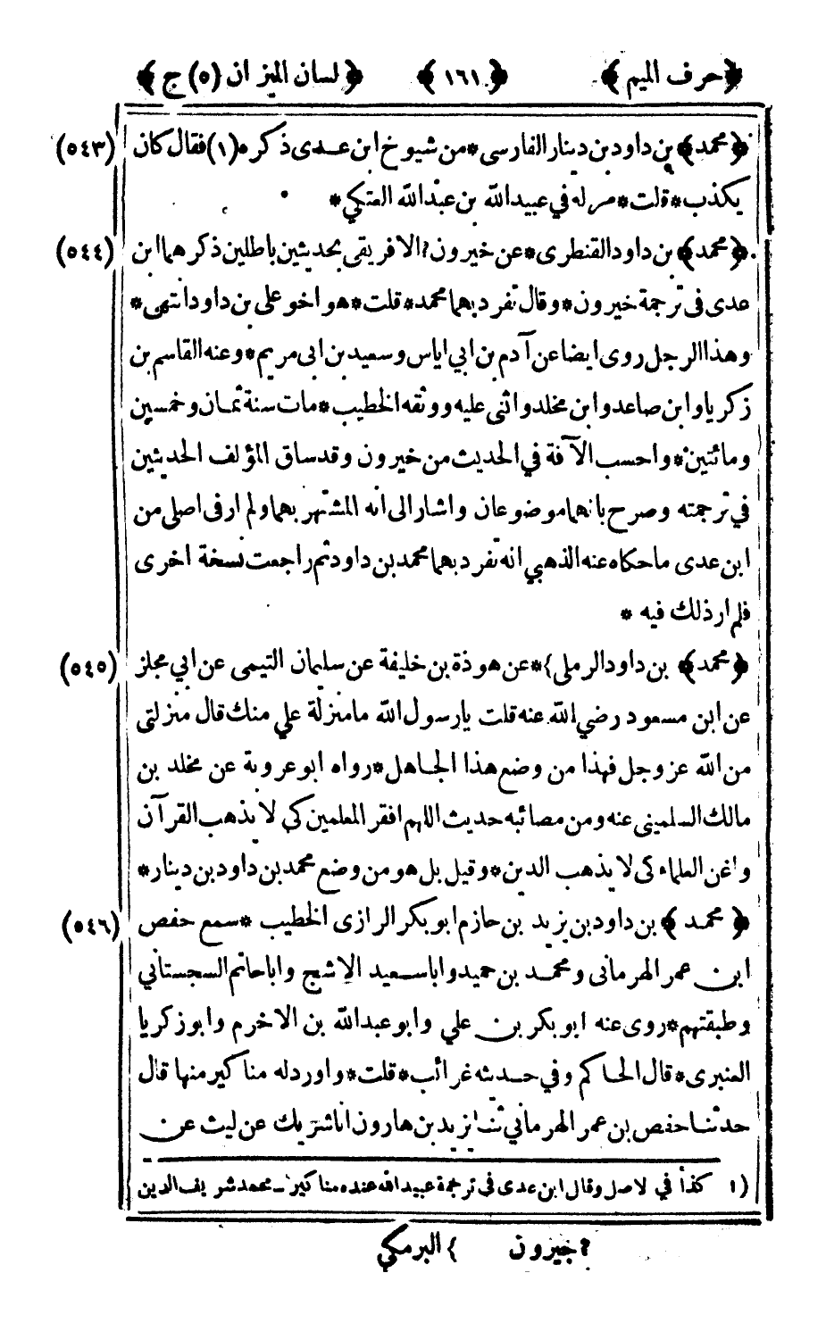 543 - "محمد" بن داود بن دينار الفارسي من شيوخ بن عدي ذكره1 فقال: كان يكذب قلت: مر له في عبيد الله بن عبد الله العتكي.