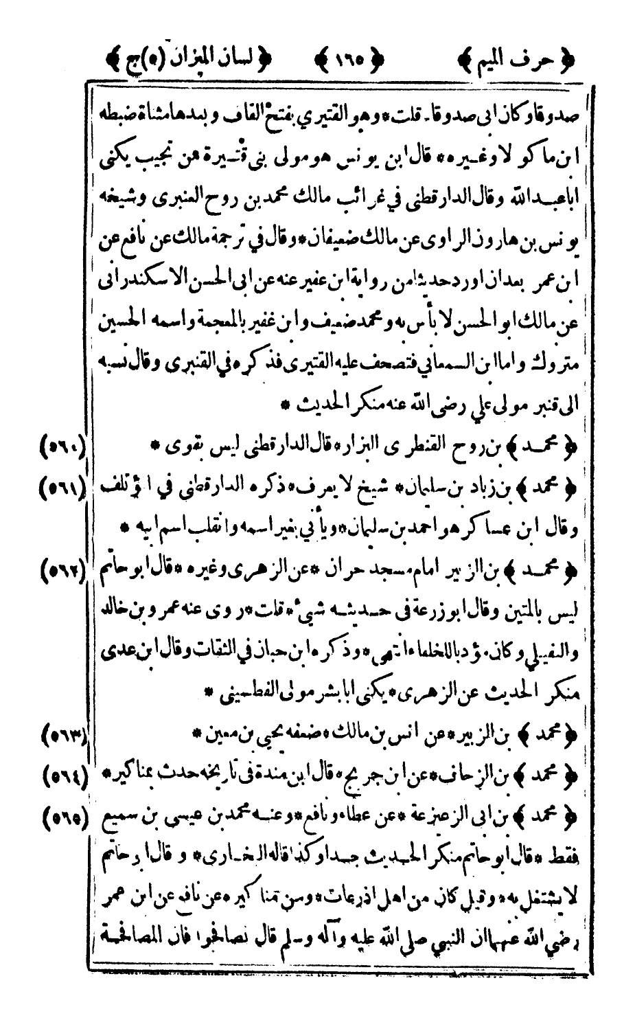 563 - "محمد" بن الزبير عن أنس بن مالك ضعفه يحيى بن معين.