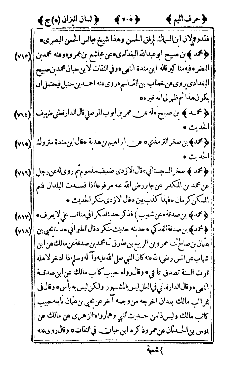715 - "محمد" بن صخر الترمذي عن إبراهيم بن هدبة قال ابن مندة: متروك الحديث.