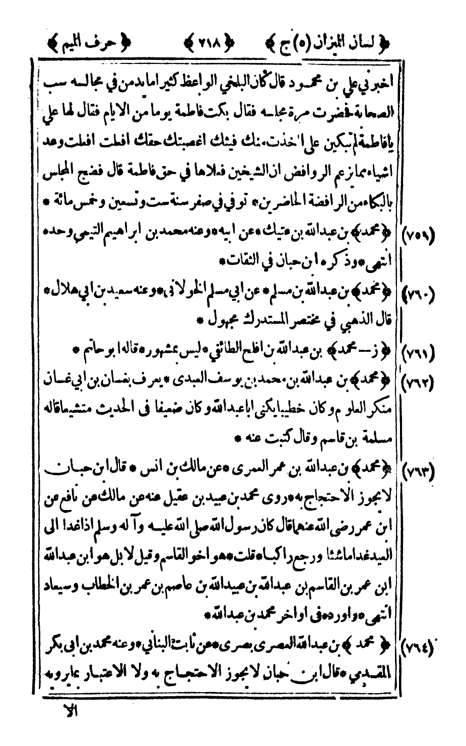760 - "محمد" بن عبد الله بن مسلم عن أبي مسلم الخولاني وعنه سعيد بن أبي هلال قال الذهبي في مختصر المستدرك مجهول.