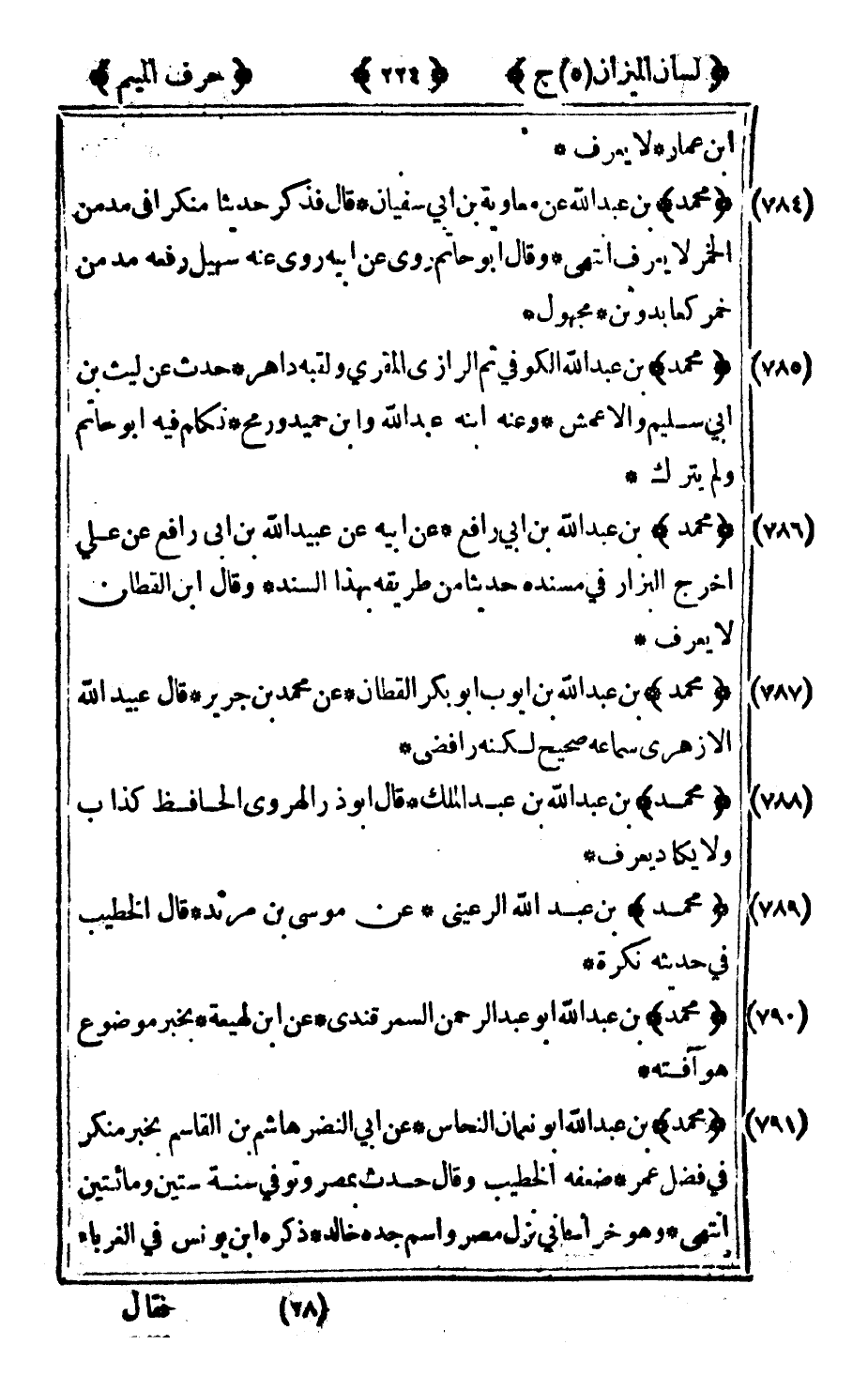 788 - "محمد" بن عبد الله بن عبد الملك قال أبو ذر الهروي الحافظ كذاب ولا يكاد يعرف.