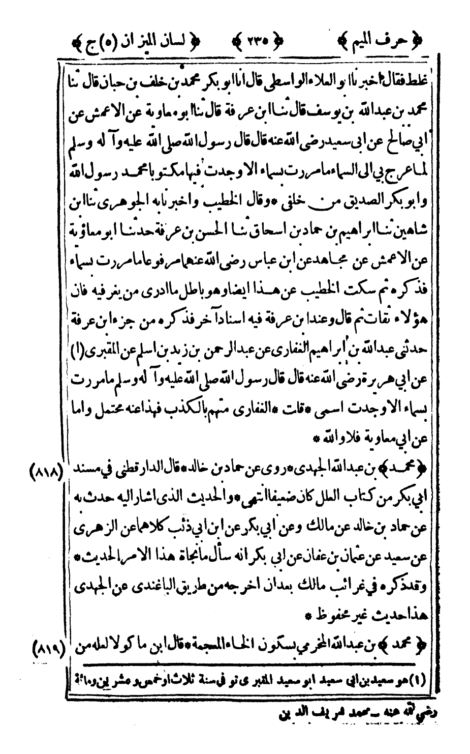 819 - "محمد" بن عبد الله المخرمي بسكون الخاء المعجمة قال ابن ماكولا لعله من