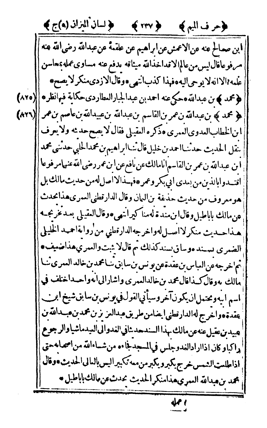 825 - "محمد" بن عبد الله حكى عنه أحمد بن عبد الجبار العطاردي حكاية فيها نظر.