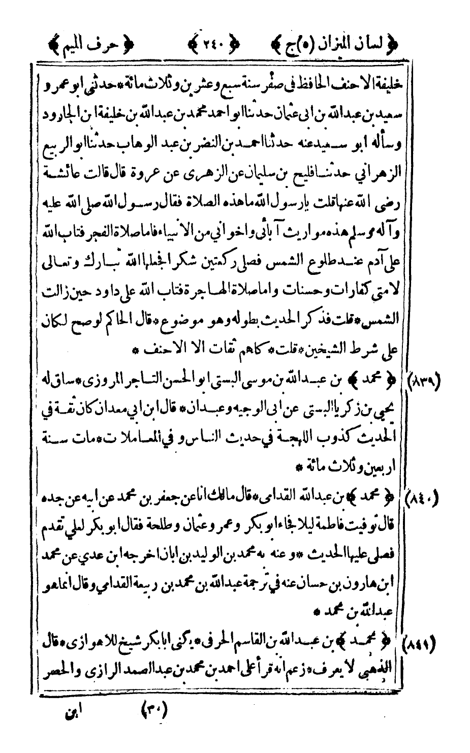 841 - "محمد" بن عبد الله بن القاسم الحرفي يكنى أبا بكر شيخ للاهوازي قال الذهبي لا يعرف زعم أنه قرأعلى أحمد بن محمد بن عبد الصمد الرازي والحصر