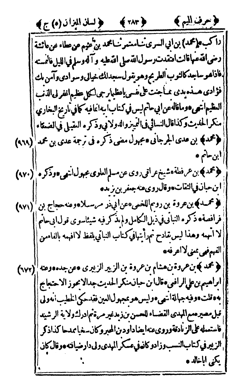 969 - "محمد" بن عدي الجرجاني مجهول مضى ذكره في ترجمة عدي بن محمد بن حاتم.