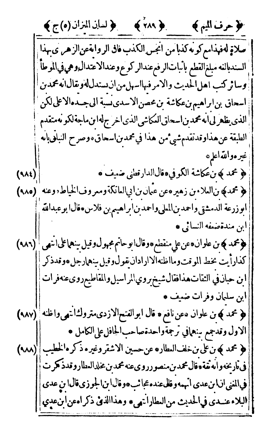 984 - "محمد" بن عكاشة الكوفي قال الدارقطني ضعيف.
