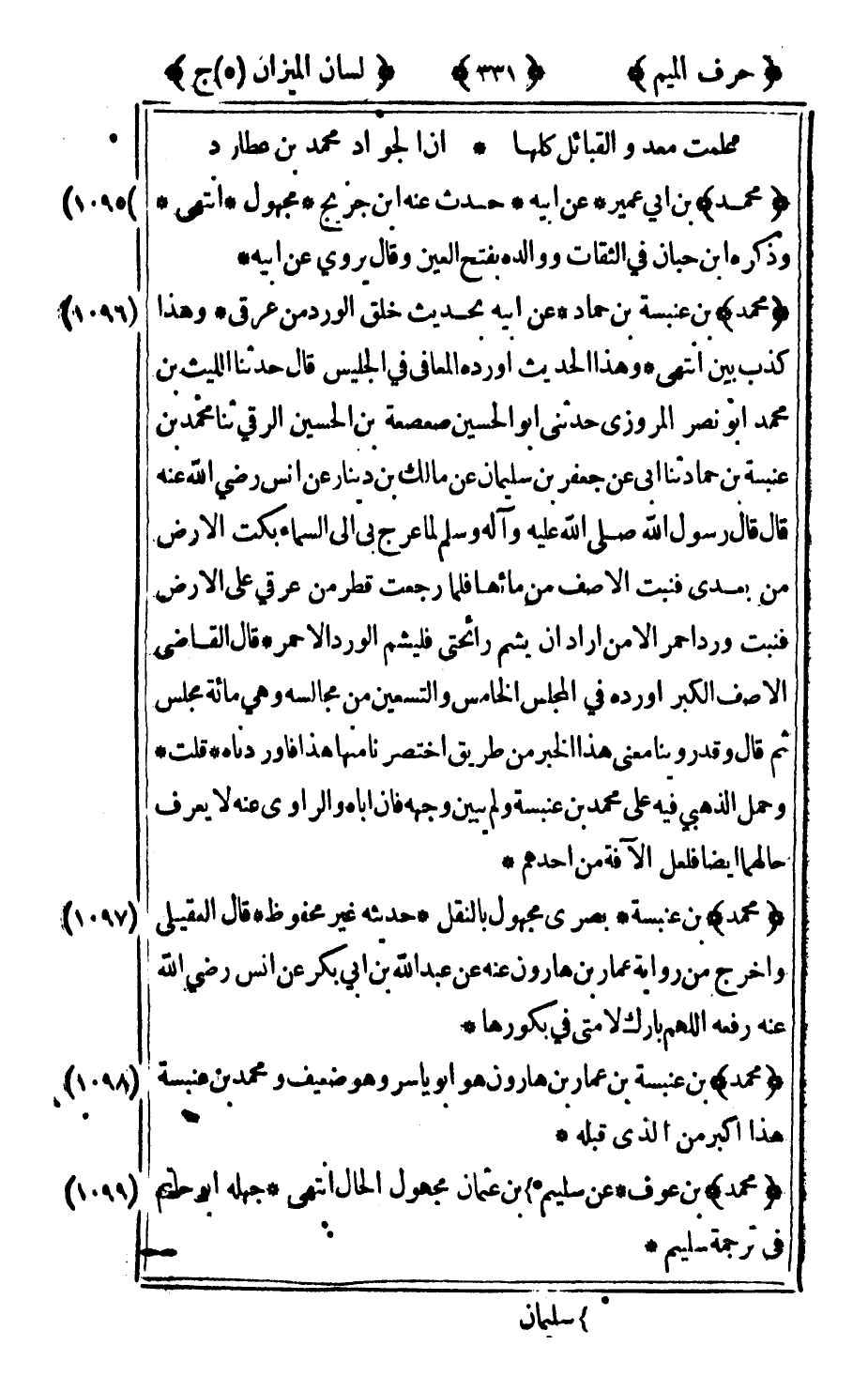 1098 - "محمد" بن عنبسة بن عمار بن هارون هو أبو ياسر وهو ضعيف ومحمد بن عنبسة هذا أكبر من الذي قبله.
