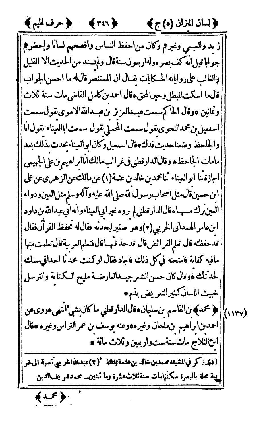 1137 - "محمد" بن القاسم بن سليمان قال الدارقطني ما كان بشيء انتهى روى عن أحمد بن إبراهيم بن ملحان وغيره وعنه يوسف بن عمر التراس وغيره قال ابن الثلاج مات سنة ست وأربعين وثلاث مائة.
