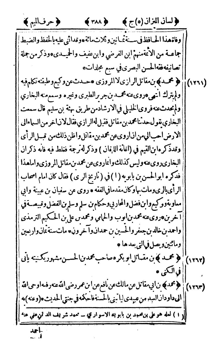 1262 - "محمد" بن مقاتل أبو بكر صاحب محمد بن الحسن مشهور بكنيته يأتي في الكنى.