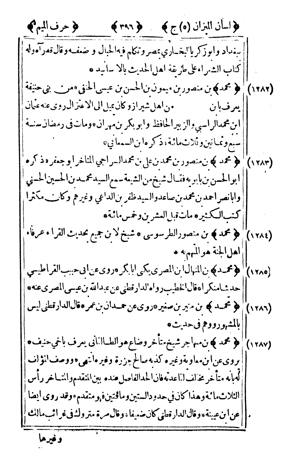 1283 - "محمد" بن منصور بن محمد بن علي بن محمد السراجي المتاخر أبو جعفر ذكره أبو الحسن بن بأبويه فقال شيخ: من الشيعة سمع السيد محمد بن الحسين الحسني وأبا نصر أحمد بن محمد بن صاعد والسيد ظفر بن الداعي وغيرهم وكان مكثرا كتب الكثير مات قبل العشرين وخمس مائة.