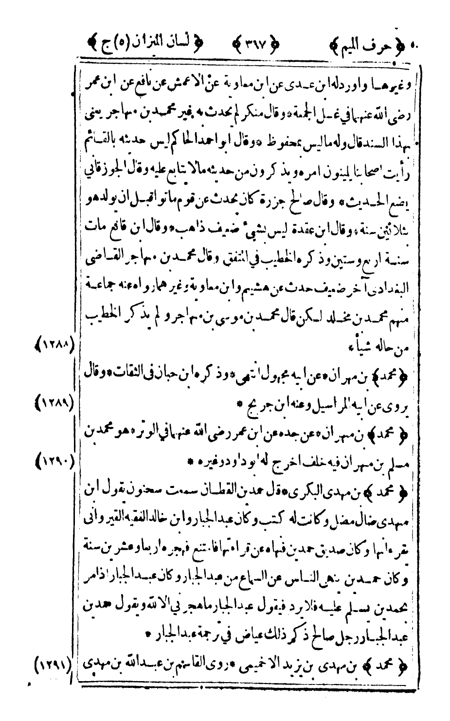 1289 - "محمد" بن مهران عن جده عن ابن عمر رضى الله عنهما في الوتر هو محمد بن مسلم بن مهران فيه خلف اخرج له أو داود وغيره.