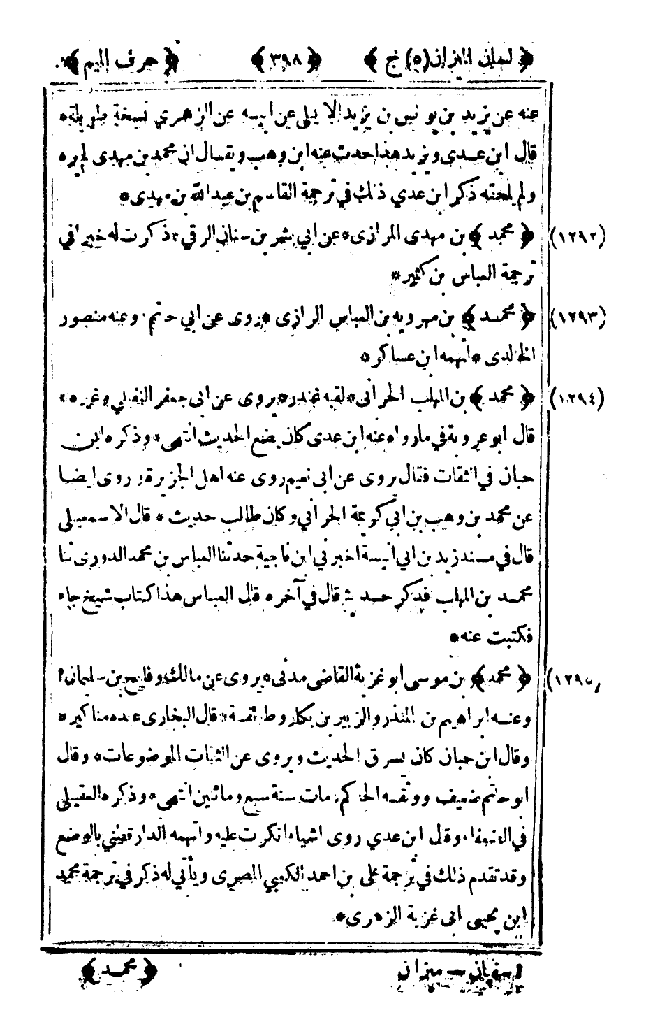 1293 – "محمد" بن مهرويه بن العباس الرازي روى عن أبي حاتم وعنه منصور الخالدي اتهمه ابن عساكر.