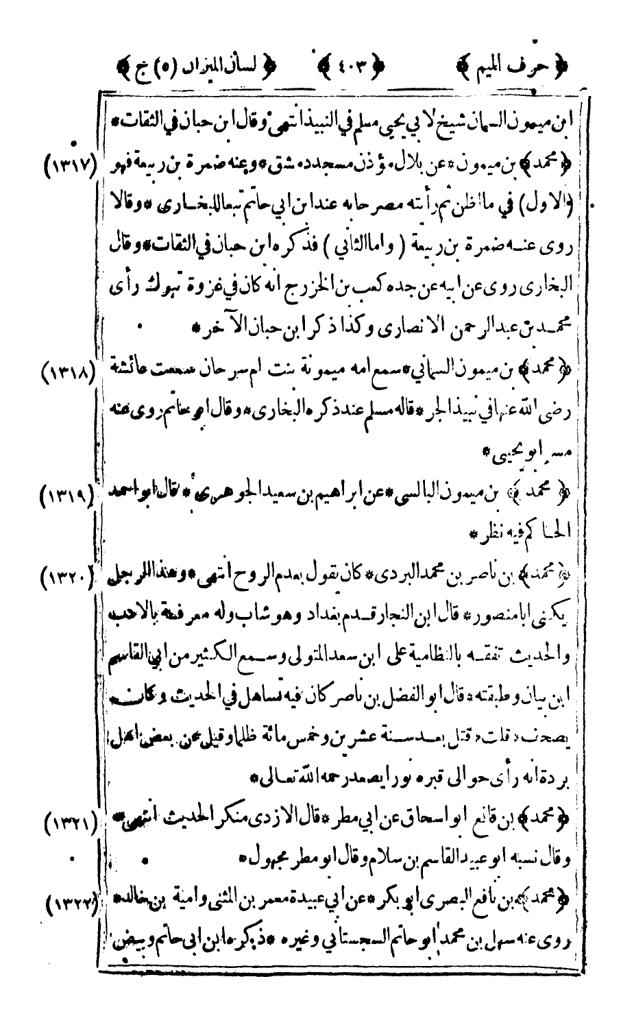 1319 - "محمد" بن ميمون البالسي عن إبراهيم بن سعيد الجوهري قال أبو أحمد الحاكم فيه نظر.