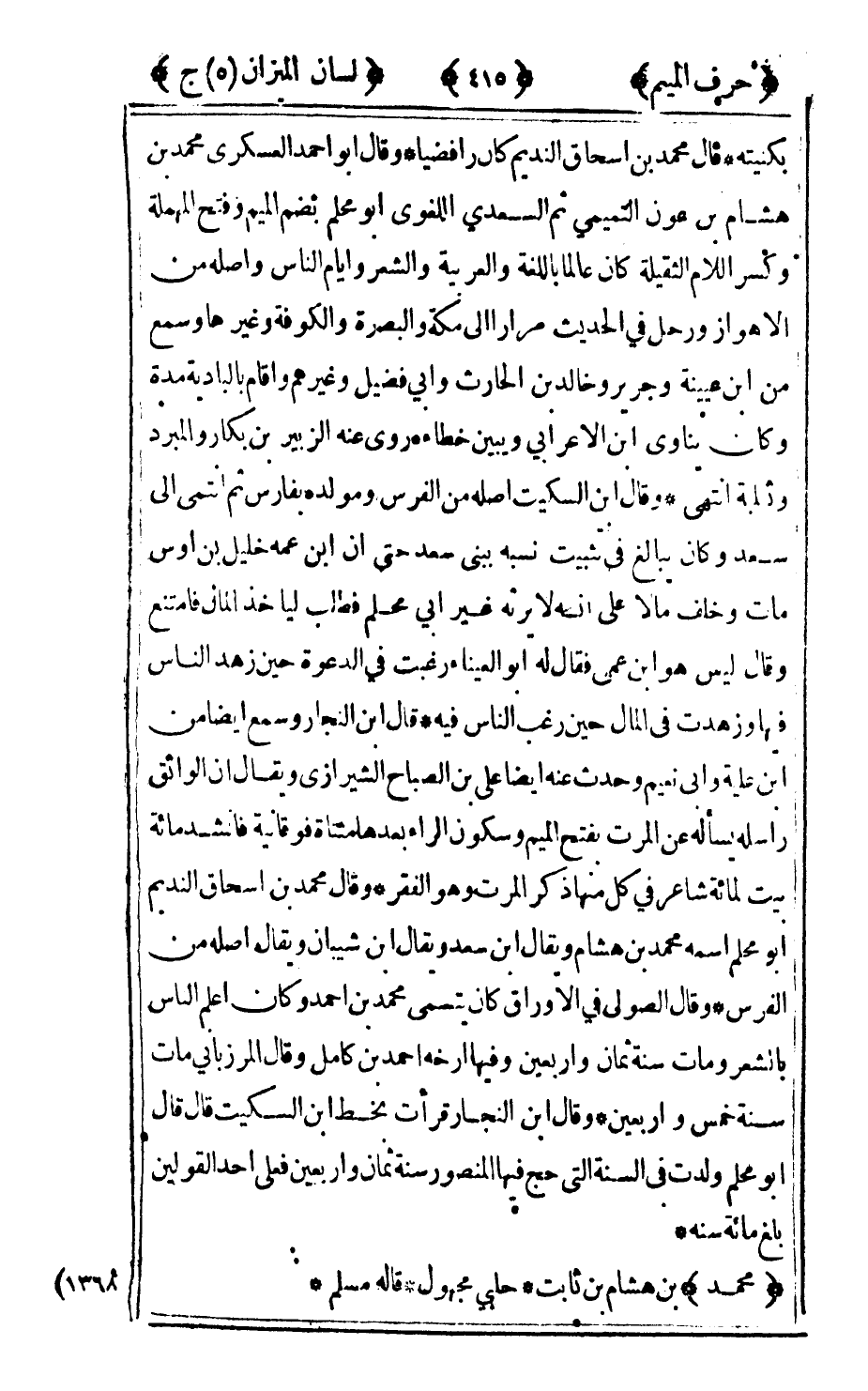 1368 - "محمد" بن هشام بن ثابت حلبي مجهول قاله مسلم.