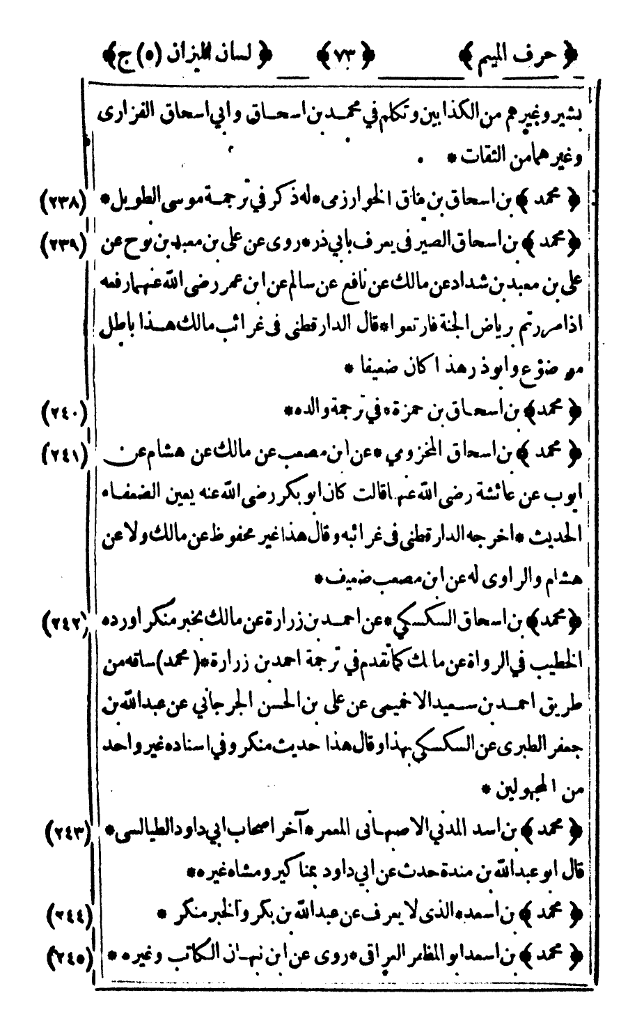 240 - "محمد" بن إسحاق بن حمزة في ترجمة والده.