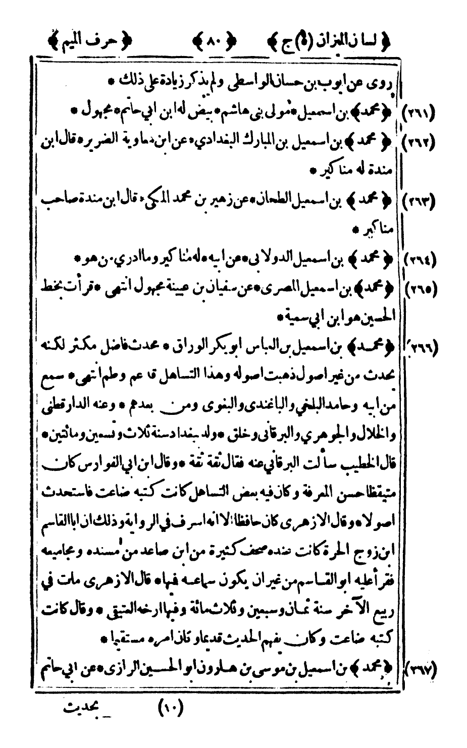 265 - "محمد" بن إسماعيل المصري عن سفي أن ابن عيينة مجهول انتهى قرأت بخط الحسين هو ابن أبي سمية.