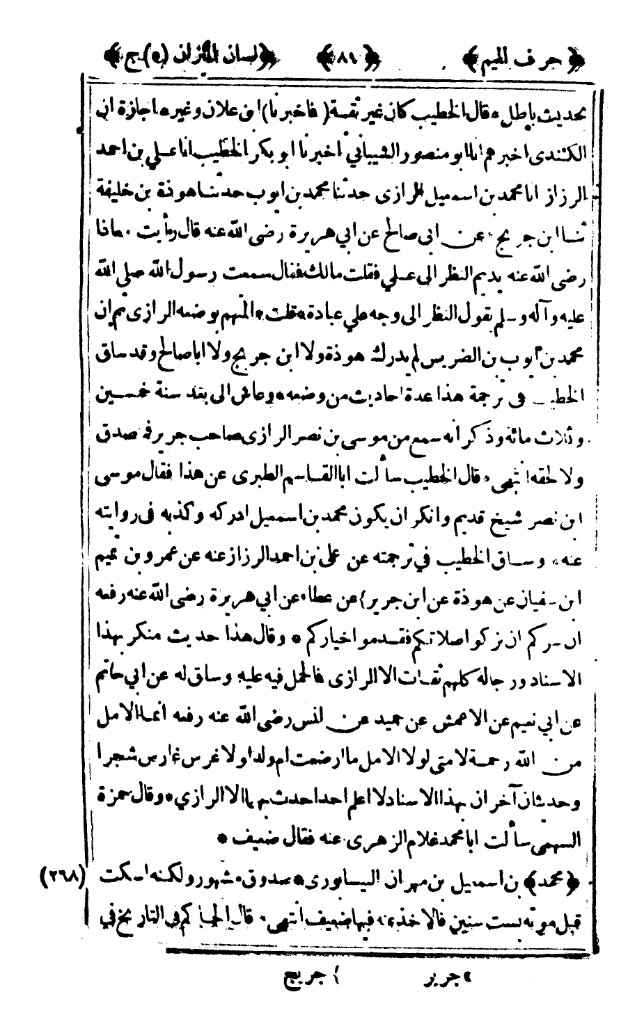 268 - محمد بن إسماعيل بن مهران النيسابوري صدوق مشهور ولكنه اسكت قبل موته بست سنين فالأخذ عنه فيها ضعيف انتهى قال الحاكم في التاريخ في