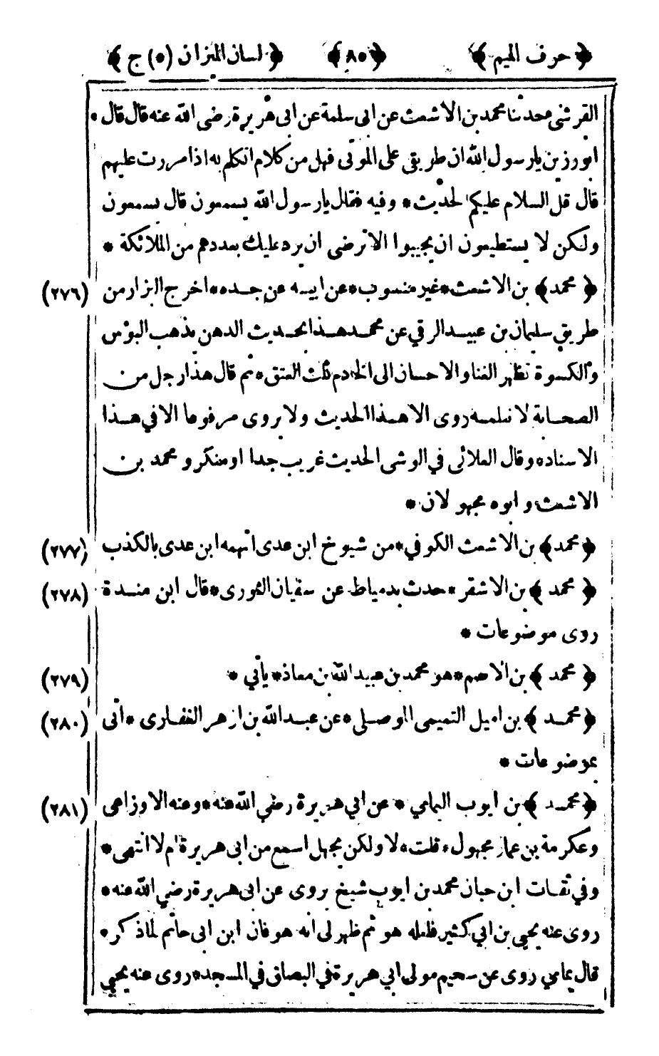 277 - "محمد" بن الأشعث الكوفي من شيوخ بن عدي اتهمه بن عدي بالكذب.