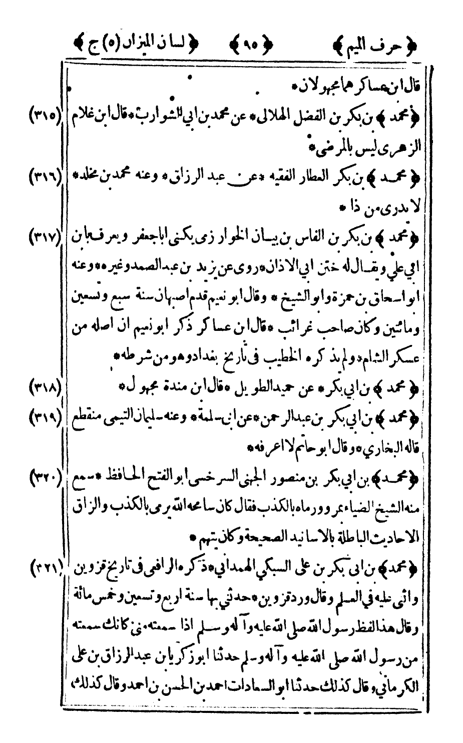 318 - "محمد" بن أبي بكر عن حميد الطويل قال ابن مندة: مجهول.