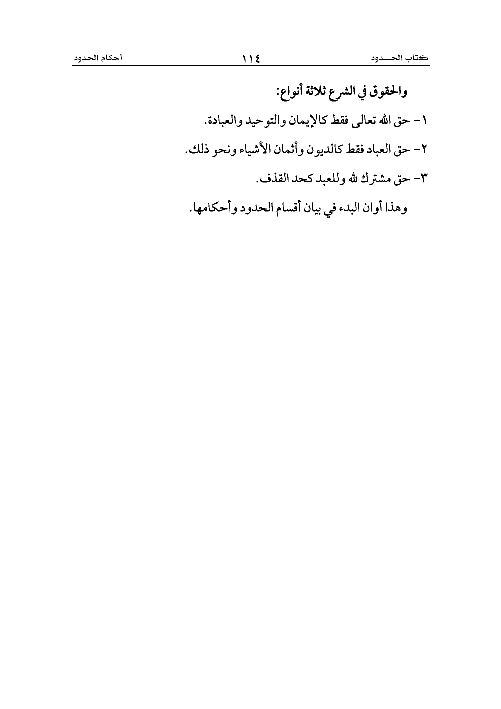 وهذا أوان البدء في بيان أقسام الحدود وأحكامها.