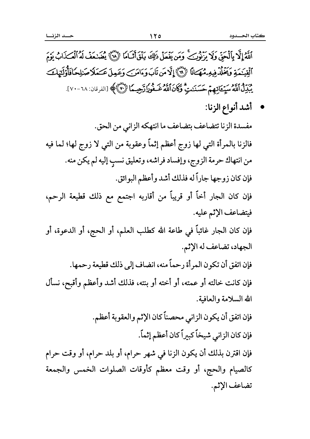 مفسدة الزنا تتضاعف بتضاعف ما انتهكه الزاني من الحق.