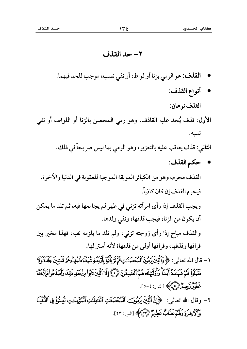 - القذف: هو الرمي بزنا أو لواط، أو نفي نسب، موجب للحد فيهما.