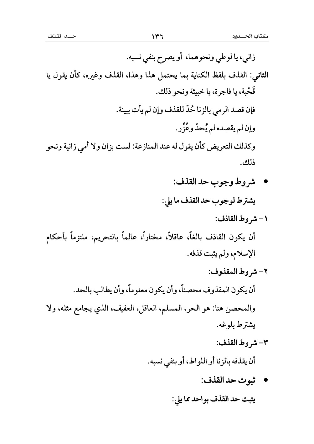 أن يكون المقذوف محصناً، وأن يكون معلوماً، وأن يطالب بالحد.