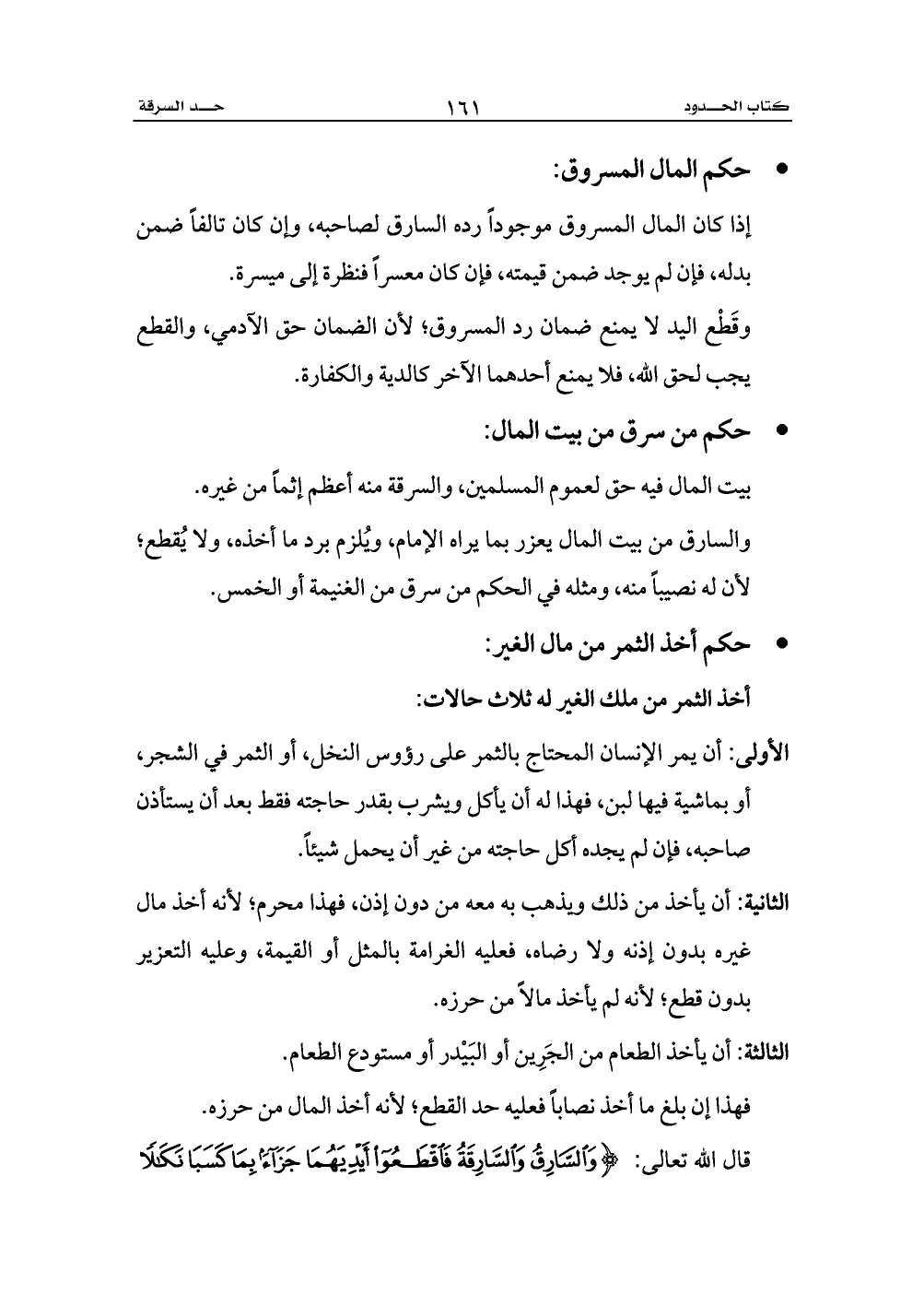 قال الله تعالى: {وَالسَّارِقُ وَالسَّارِقَةُ فَاقْطَعُوا أَيْدِيَهُمَا جَزَاءً بِمَا كَسَبَا نَكَالًا