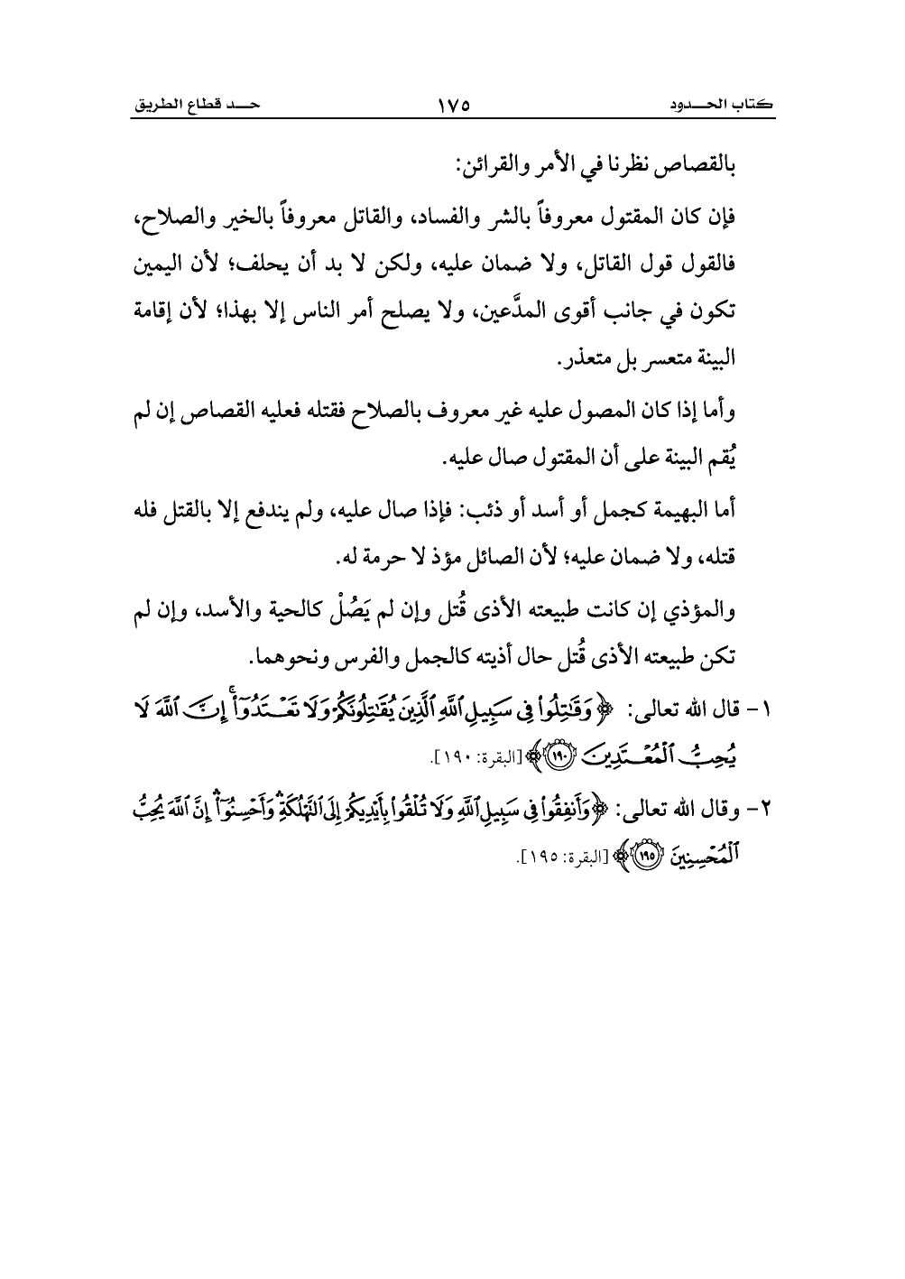 1 - قال الله تعالى: {وَقَاتِلُوا فِي سَبِيلِ اللَّهِ الَّذِينَ يُقَاتِلُونَكُمْ وَلَا تَعْتَدُوا إِنَّ اللَّهَ لَا يُحِبُّ الْمُعْتَدِينَ (190)} [البقرة: 190].