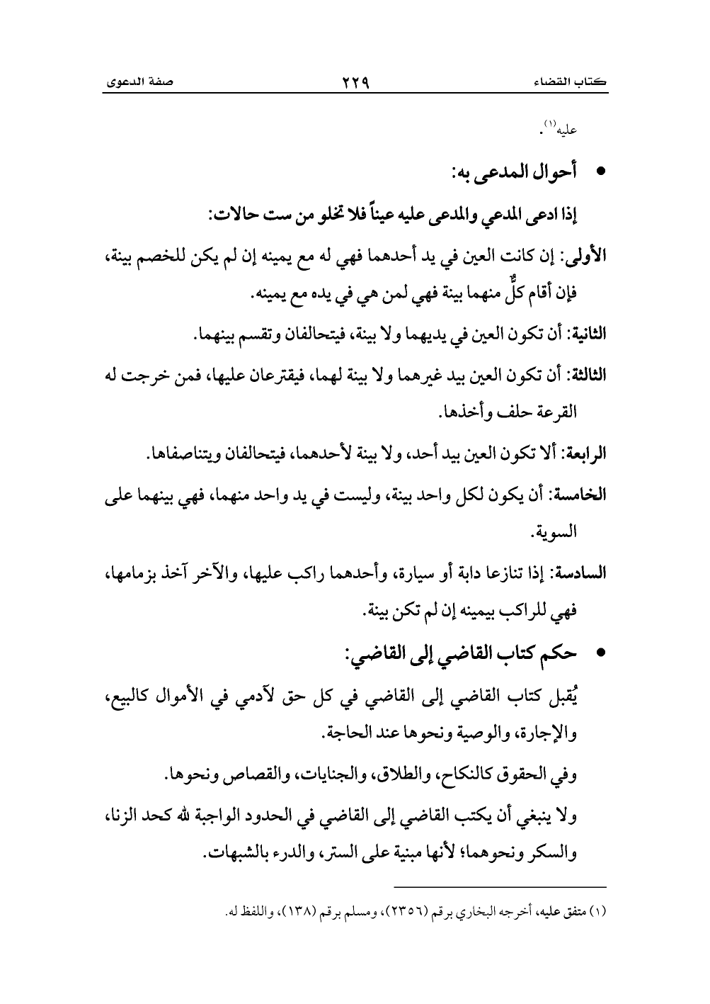 إذا ادعى المدعي والمدعى عليه عيناً فلا تخلو من ست حالات: