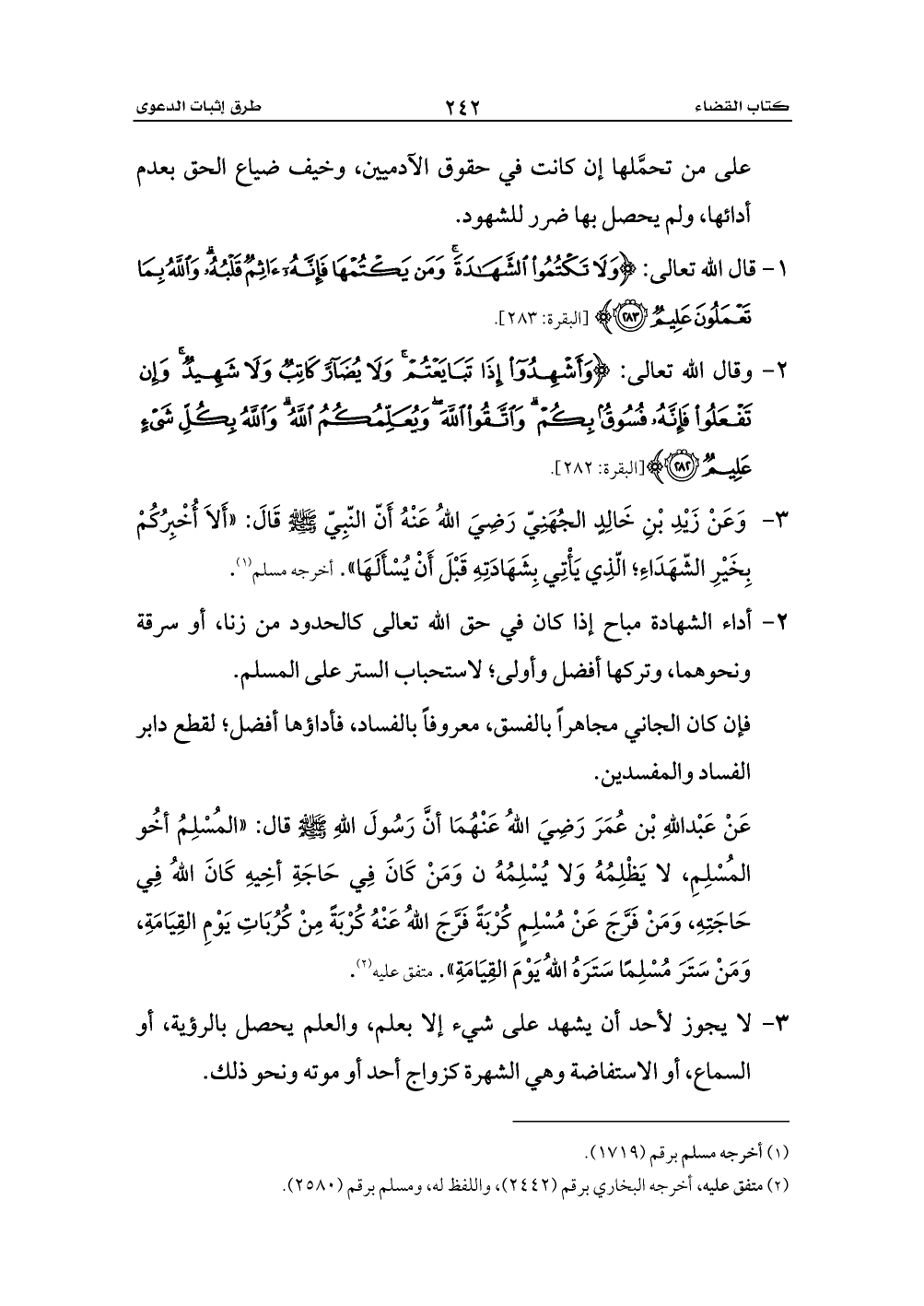 1 - قال الله تعالى: {وَلَا تَكْتُمُوا الشَّهَادَةَ وَمَنْ يَكْتُمْهَا فَإِنَّهُ آثِمٌ قَلْبُهُ وَاللَّهُ بِمَا تَعْمَلُونَ عَلِيمٌ (283)} [البقرة: 283].