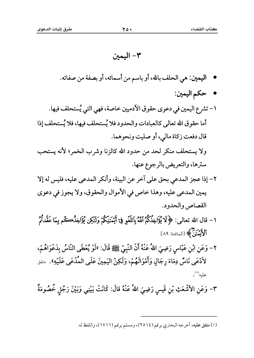 3 - وَعَنِ الأشْعَثِ بْنِ قَيسٍ رَضِيَ اللهُ عَنْهُ قالَ: كَانَتْ بَيْنِي وَبَيْنَ رَجُلٍ خُصُومَةٌ