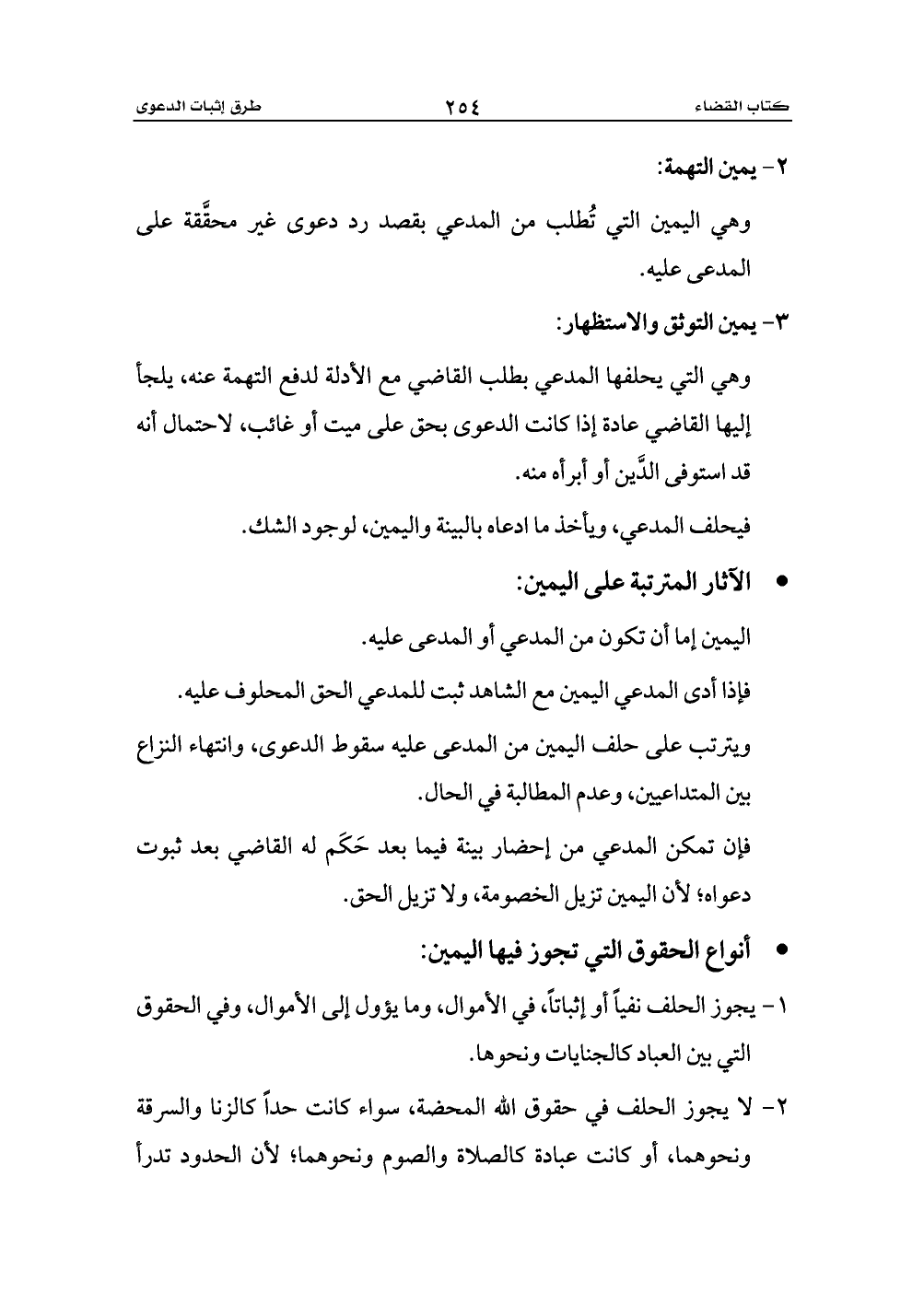 1 - يجوز الحلف نفياً أو إثباتاً، في الأموال، وما يؤول إلى الأموال، وفي الحقوق التي بين العباد كالجنايات ونحوها.