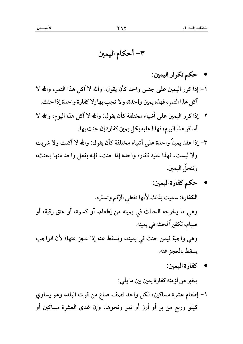 1 - إذا كرر اليمين على جنس واحد كأن يقول: والله لا آكل هذا التمر، والله لا آكل هذا التمر، فهذه يمين واحدة، ولا تجب بها إلا كفارة واحدة إذا حنث.