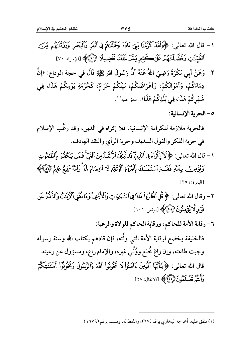 6 - رقابة الأمة للحاكم، ورقابة الحاكم للولاة والرعية: