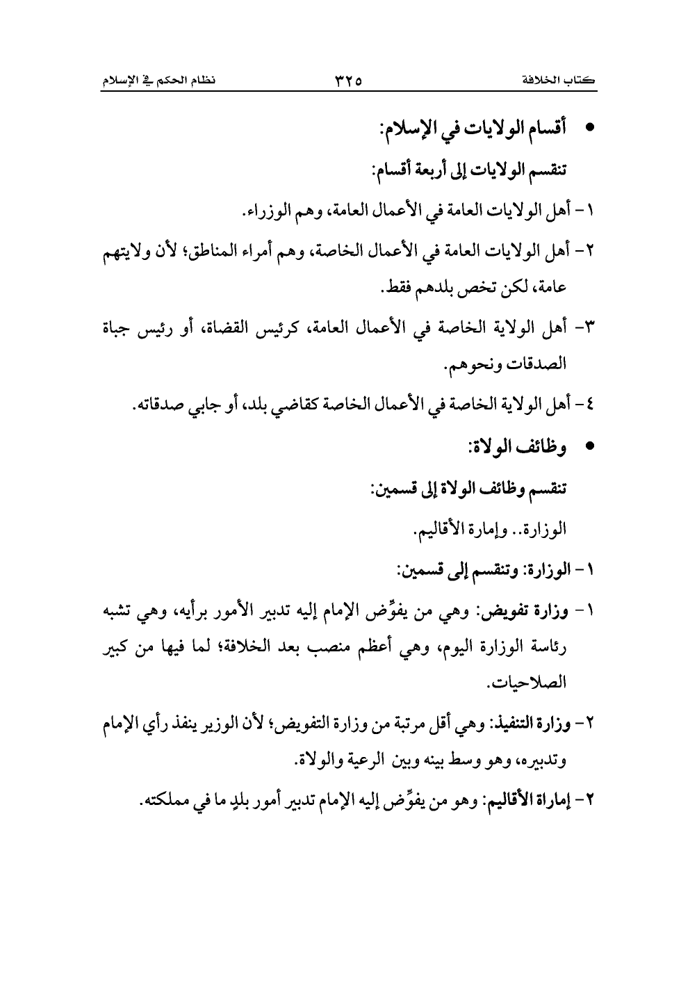 1 - أهل الولايات العامة في الأعمال العامة، وهم الوزراء.