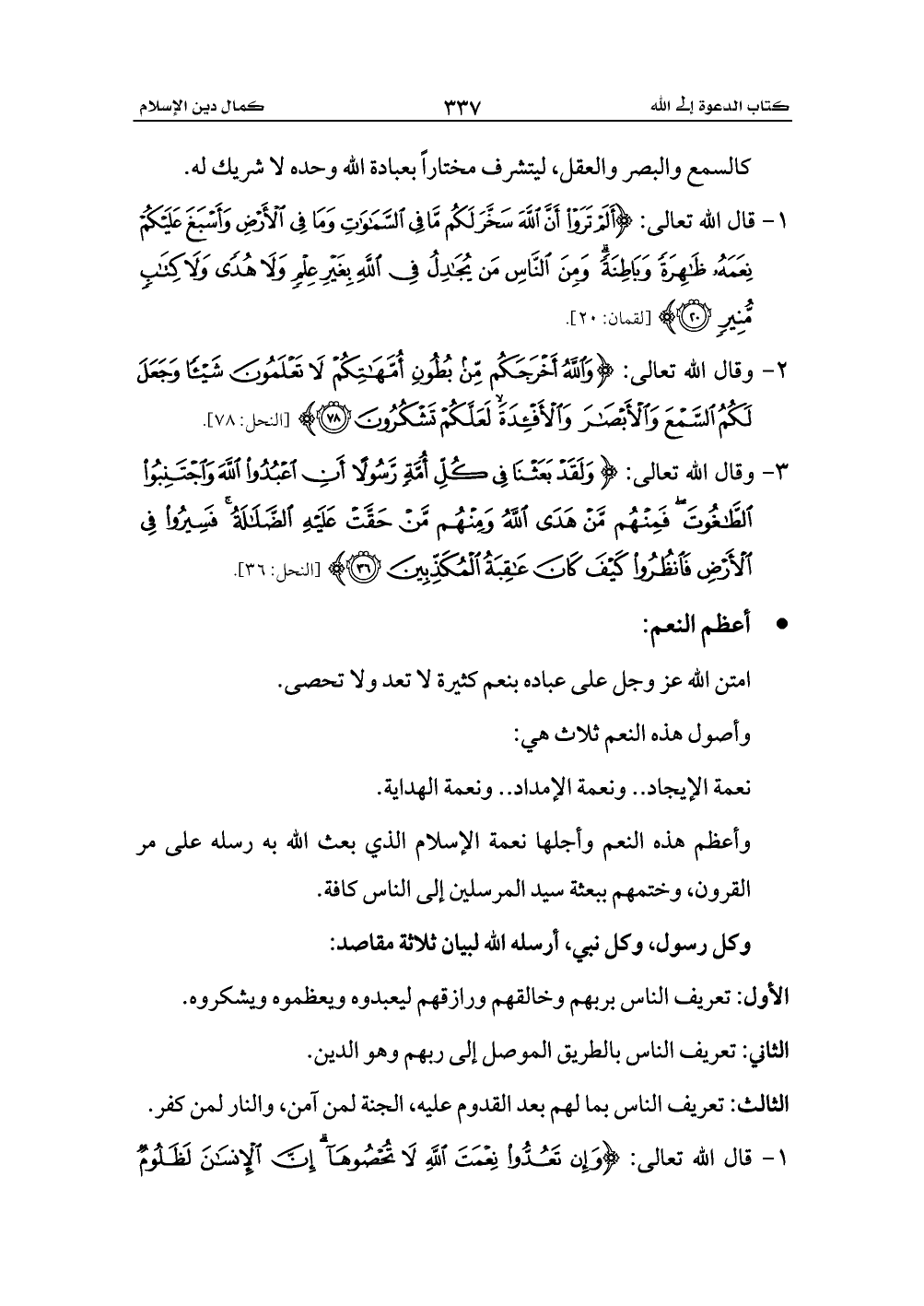 وأعظم هذه النعم وأجلها نعمة الإسلام الذي بعث الله به رسله على مر القرون، وختمهم ببعثة سيد المرسلين إلى الناس كافة.