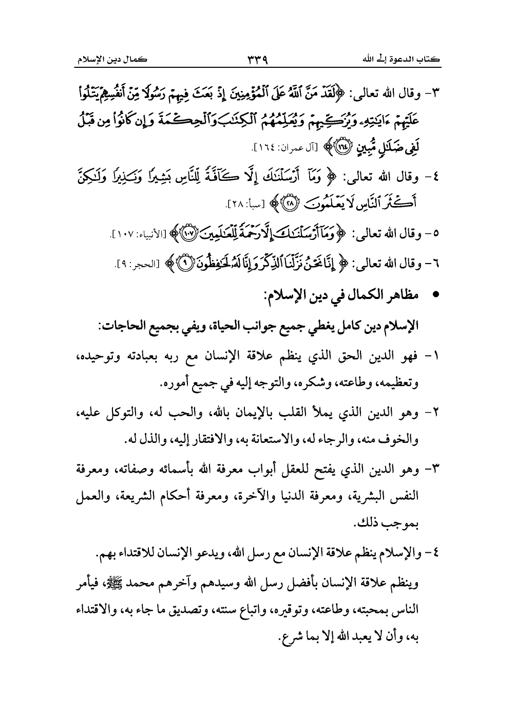 الإسلام دين كامل يغطي جميع جوانب الحياة، ويفي بجميع الحاجات: