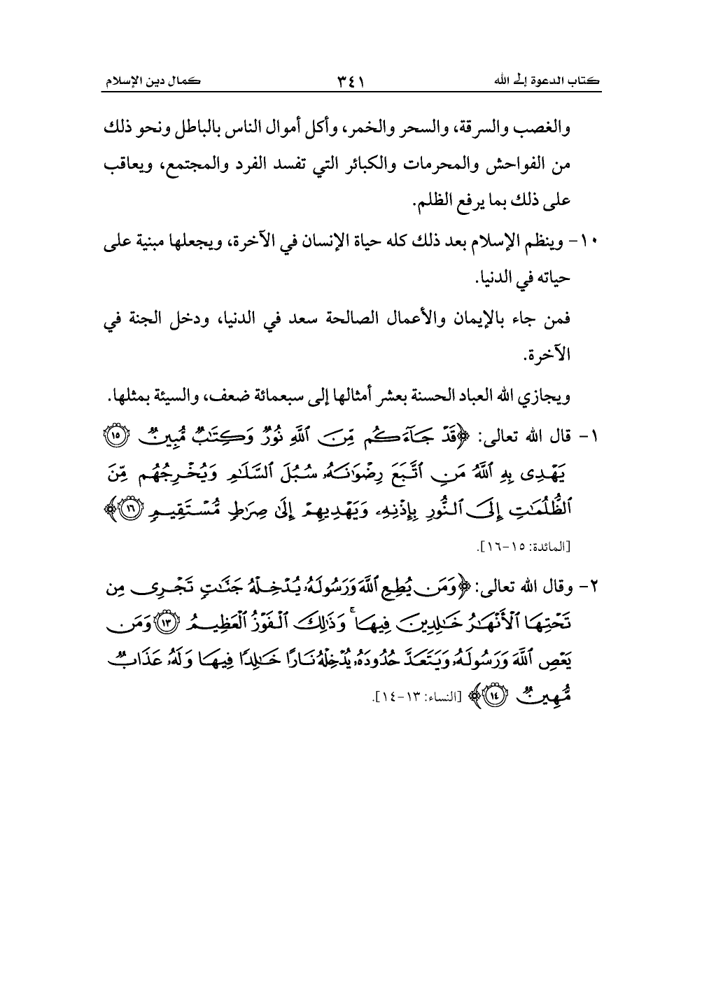 10 - وينظم الإسلام بعد ذلك كله حياة الإنسان في الآخرة، ويجعلها مبنية على حياته في الدنيا.