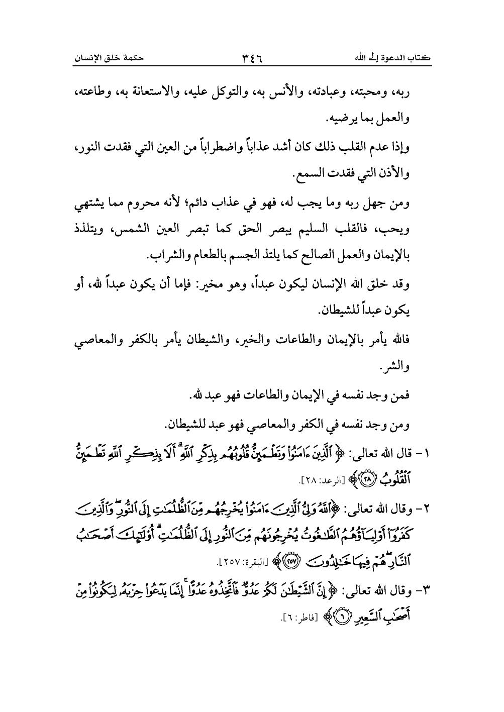 ومن وجد نفسه في الكفر والمعاصي فهو عبد للشيطان.