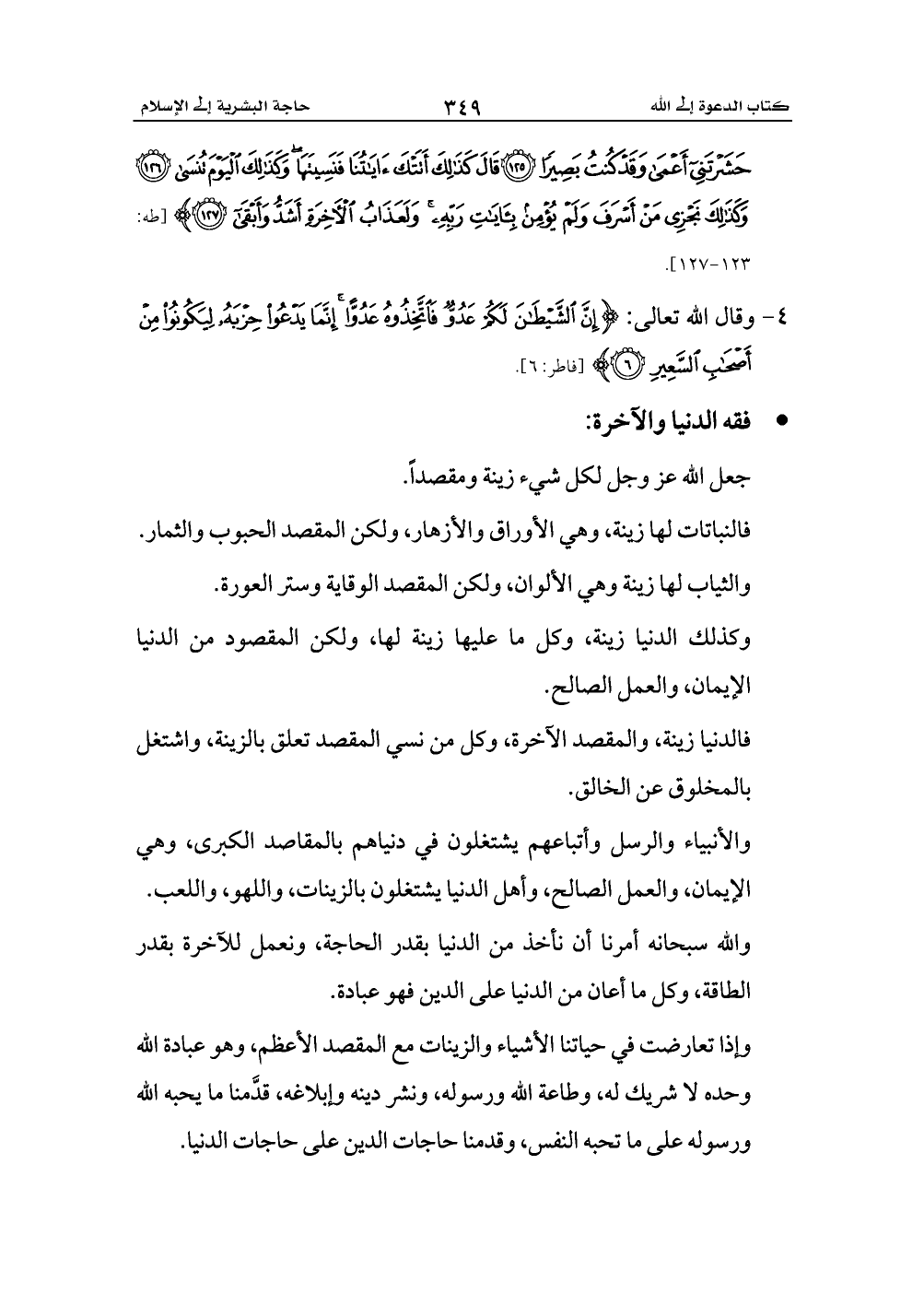 والأنبياء والرسل وأتباعهم يشتغلون في دنياهم بالمقاصد الكبرى، وهي الإيمان، والعمل الصالح، وأهل الدنيا يشتغلون بالزينات، واللهو، واللعب.
