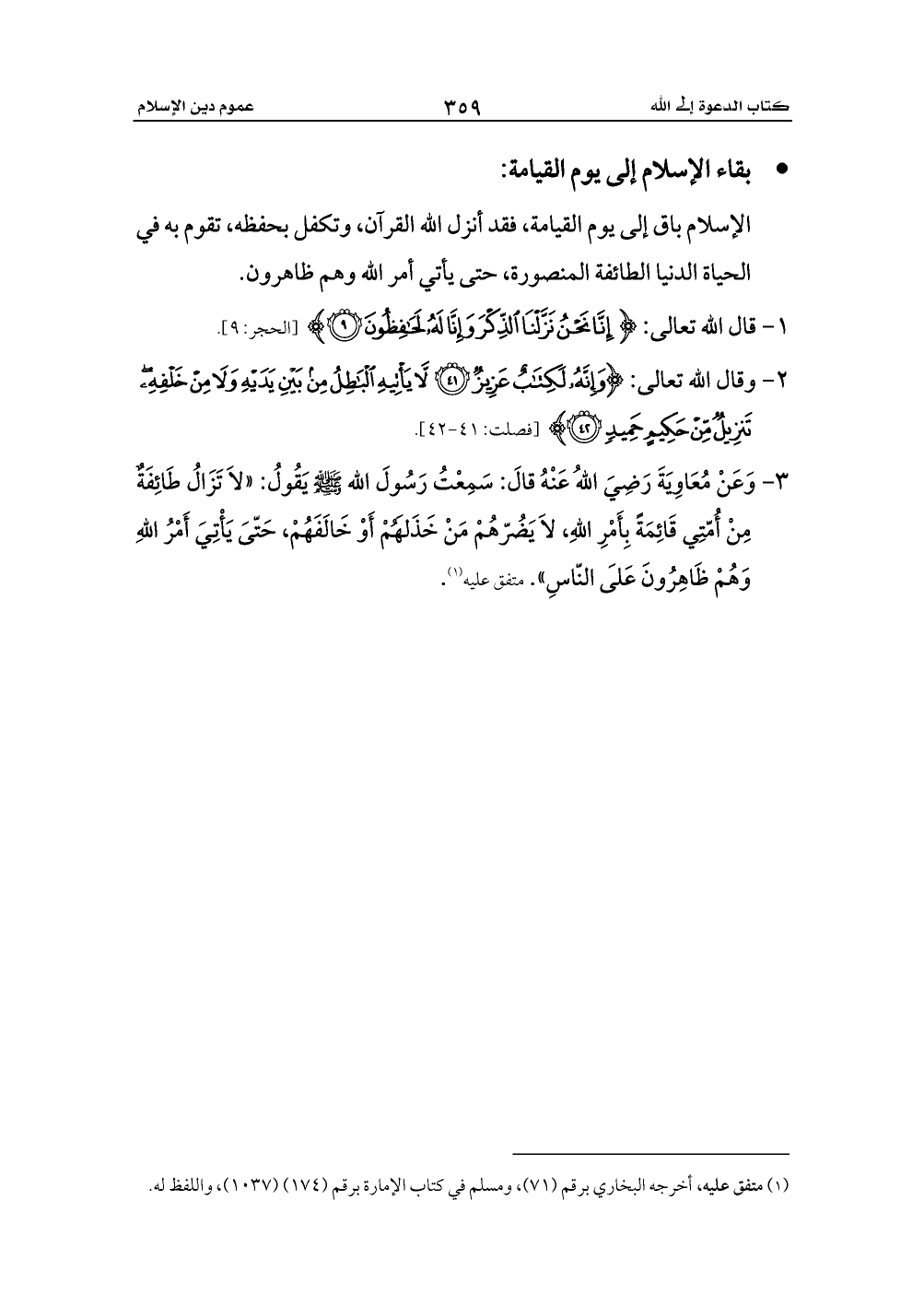 - بقاء الإسلام إلى يوم القيامة: