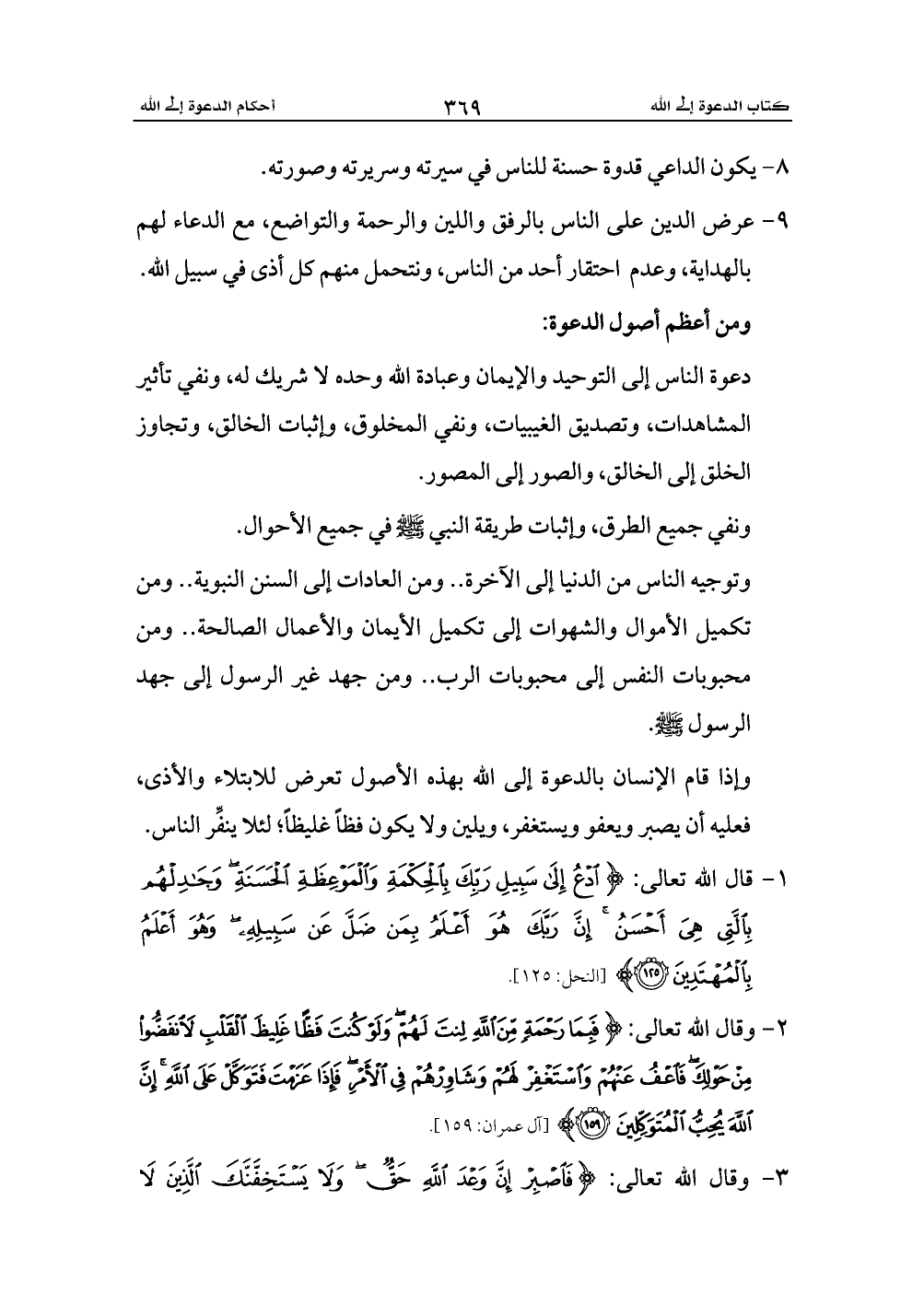1 - قال الله تعالى: {ادْعُ إِلَى سَبِيلِ رَبِّكَ بِالْحِكْمَةِ وَالْمَوْعِظَةِ الْحَسَنَةِ وَجَادِلْهُمْ بِالَّتِي هِيَ أَحْسَنُ إِنَّ رَبَّكَ هُوَ أَعْلَمُ بِمَنْ ضَلَّ عَنْ سَبِيلِهِ وَهُوَ أَعْلَمُ بِالْمُهْتَدِينَ (125)} ... [النحل: 125].
