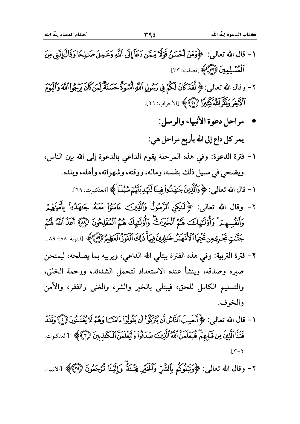 1 - قال الله تعالى: {وَمَنْ أَحْسَنُ قَوْلًا مِمَّنْ دَعَا إِلَى اللَّهِ وَعَمِلَ صَالِحًا وَقَالَ إِنَّنِي مِنَ الْمُسْلِمِينَ (33)} [فصلت: 33].