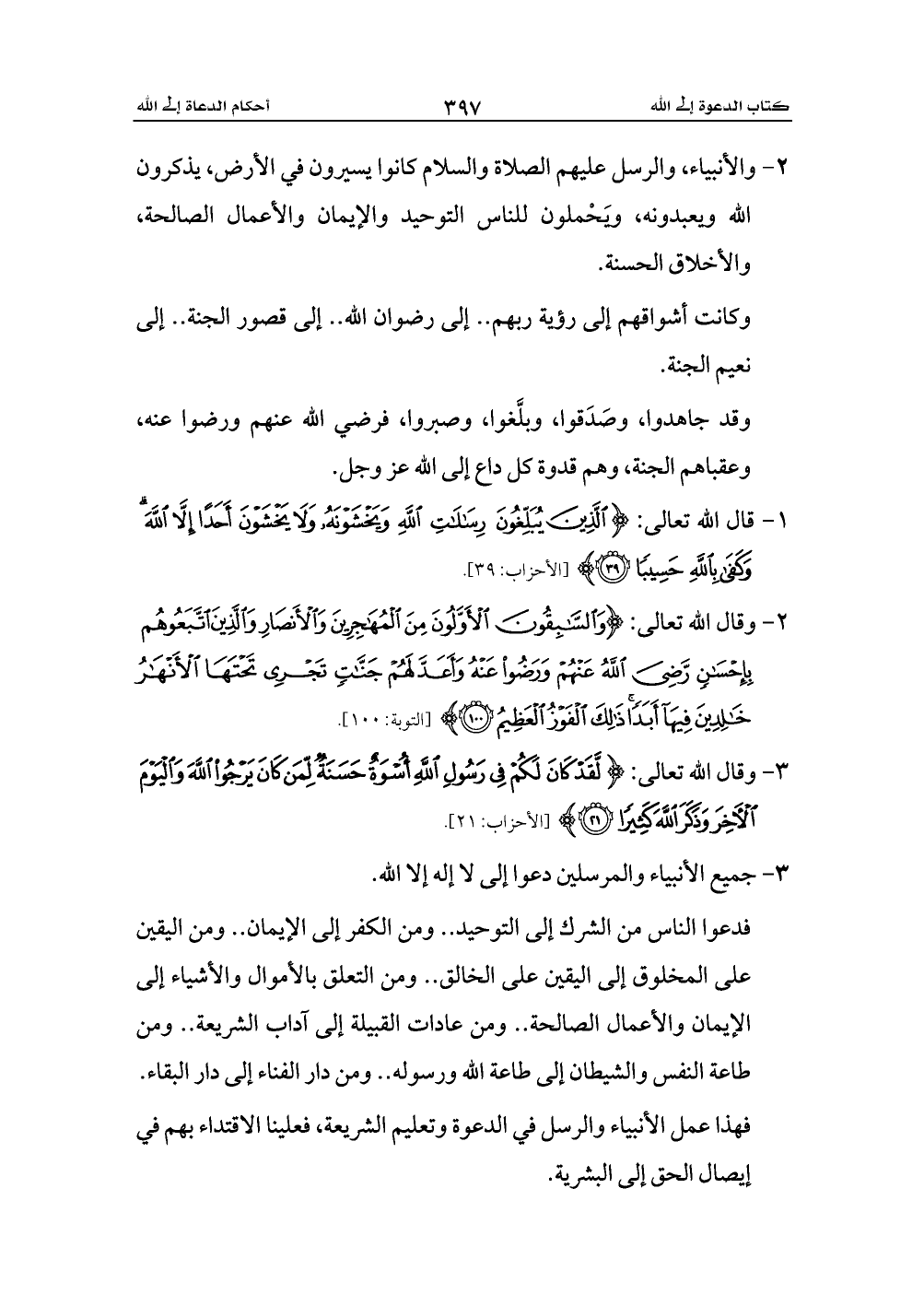 1 - قال الله تعالى: {الَّذِينَ يُبَلِّغُونَ رِسَالَاتِ اللَّهِ وَيَخْشَوْنَهُ وَلَا يَخْشَوْنَ أَحَدًا إِلَّا اللَّهَ وَكَفَى بِاللَّهِ حَسِيبًا (39)} ... [الأحزاب: 39].