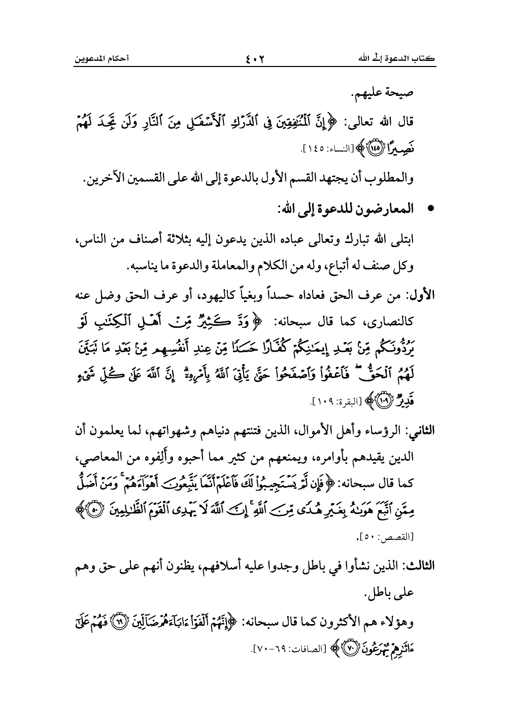 ابتلى الله تبارك وتعالى عباده الذين يدعون إليه بثلاثة أصناف من الناس، وكل صنف له أتباع، وله من الكلام والمعاملة والدعوة ما يناسبه.